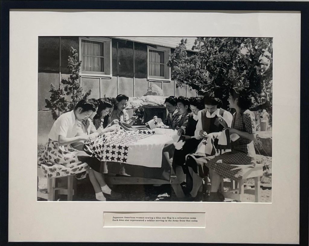 During World War II, a worldwide conflict emerged, encompassing countless individuals from different nations, all of whom made substantial sacrifices for their respective countries. Amidst this chaotic era, the often-overlooked narratives revolve around Japanese American women who found themselves confined in Internment camps alongside their children, while their husbands dutifully served in the United States Army. During the aftermath of the Pearl Harbor attack in 1941, numerous Japanese American women, alongside their families, were compelled to relocate to internment camps. Despite the difficulties posed by internment, these women actively participated in volunteer activities within the camps. One notable example was their involvement in sewing blue stars, symbolizing each Japanese American soldier serving during that period, as depicted in the provided image.