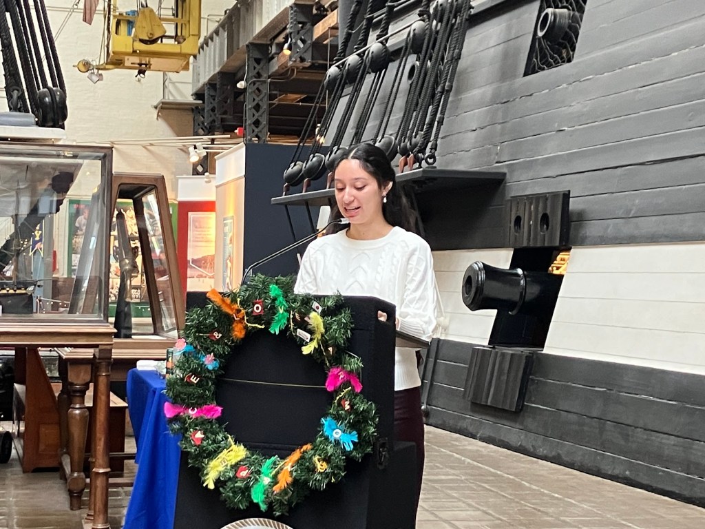 On December 7th, our Japanese Plus program got to go to the Navy Yard in southeast DC to participate in a special event commemorating the lives lost when the Japanese attacked Pearl Harbor in 1941. We were invited to take part in a Pearl Harbor Remembrance Day Program there by the National Museum of the US Navy. On behalf of our whole group, we want to express appreciation to Education Director Paul Perry and the others at the museum for inviting us and for being such great hosts.
