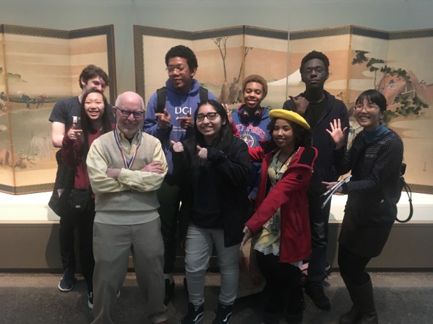 On Saturday, February 8th, our Japanese Plus group had a special day outside the classroom. First we went to the Freer Gallery of Art to visit the very special exhibit, “Hokusai: Mad About Painting.” We are so grateful (again) to good friend of the program, Robin Berrington, who was our extremely knowledgeable and interactive docent. Then we walked across the Mall and into Chinatown – we were only allowed to speak Japanese the whole time! Last stop was the National Portrait Gallery, where we stopped by a painting by Japanese American artist, Roger Shimomura. Then Eshita-sensei asked students to write about their day – again, in Japanese. A fun challenge!
